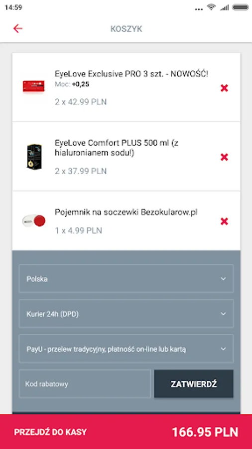 Selection of contact lenses in the application Bezokularow.pl in every respect is as wide as the website, but thanks to mobile application - presented in a much more accessible form. You wear daily disposable lenses? Or maybe monthly or fortnightly? Prefer-clock contact lenses? All variants of lenses are available in a mobile app at your fingertips - at any time - in your smartphone. We'll send Bezokularow.pl will help you make regular purchases of your favorite contact lens care products and liquids or other accessories at any time. As a regular customer, you can count on a discount of up to 10% on EVERY order or additional freebies for purchases.
