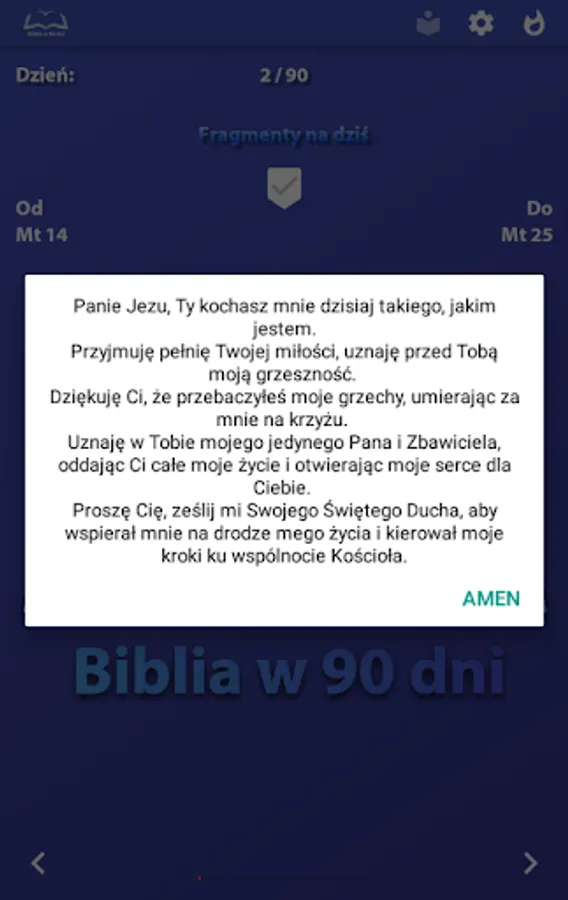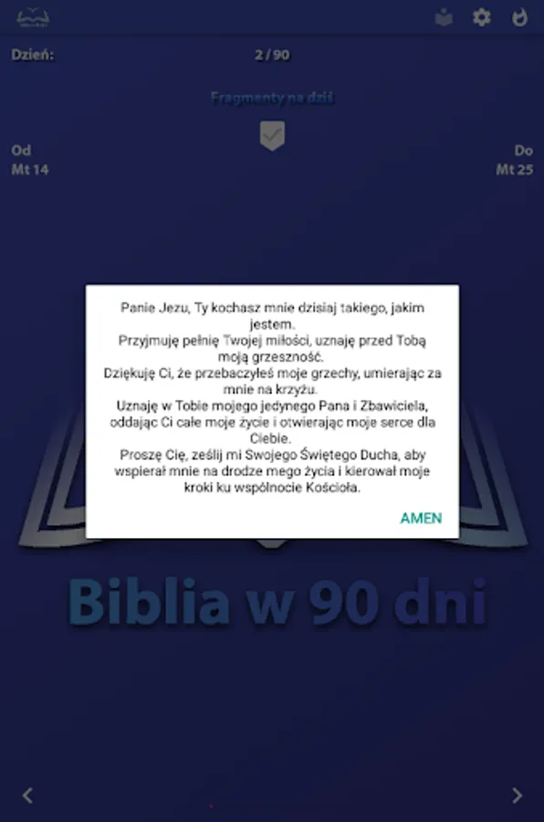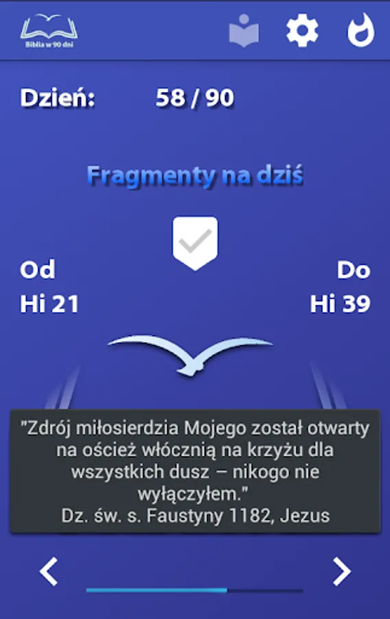 The app includes a 90-day schedule for reading all of the Scriptures, and allows you to track your reading progress. It also contains the entire text of the Scriptures, broken down into fragments, in the translation of the Saint Paul's Edition.