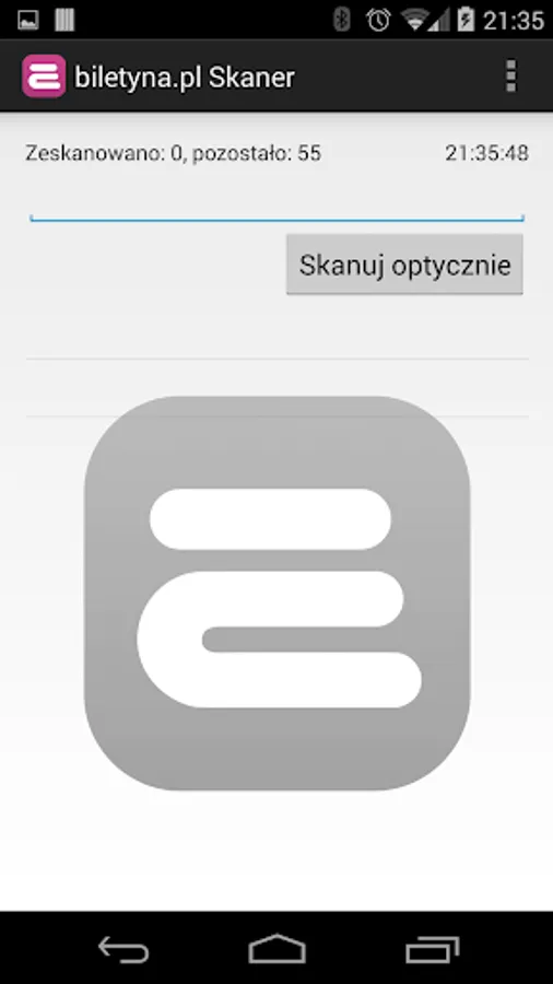 With this application you can scan tickets biletyna.pl portal and all others. By using a central database it is possible to use multiple scanners exchanging information with each other about scans tickets. Note - you must have an active account in the system biletyna.pl! To create your account and start scanning tickets, please contact us at the address or phone number organizatorzy@biletyna.pl 22 666 98 08.