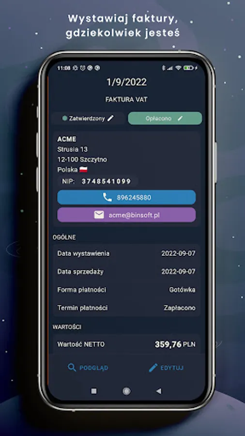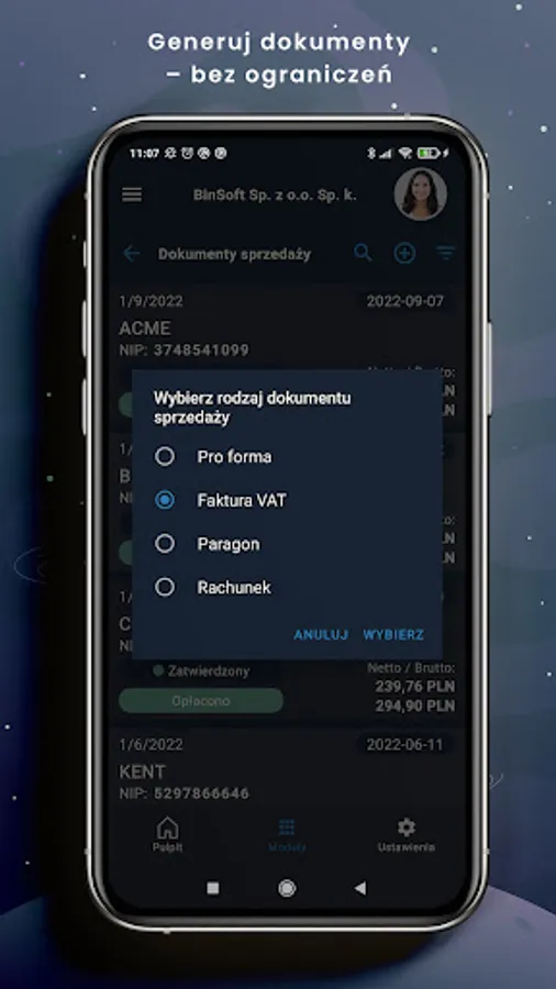 With mpFaktura you can run your business from anywhere in the world. Generate commercial documents, verify orders, manage warehouse management. *