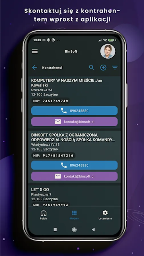 - send e-mail, SMS, make calls and share documents directly from the application;