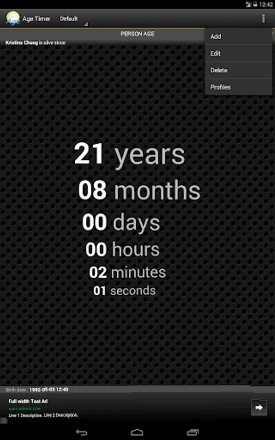 Age Timer was designed to measure accurately your age and time to your next birthday. This app is also able to track many different profiles, which can represent your friends or persons you just know.