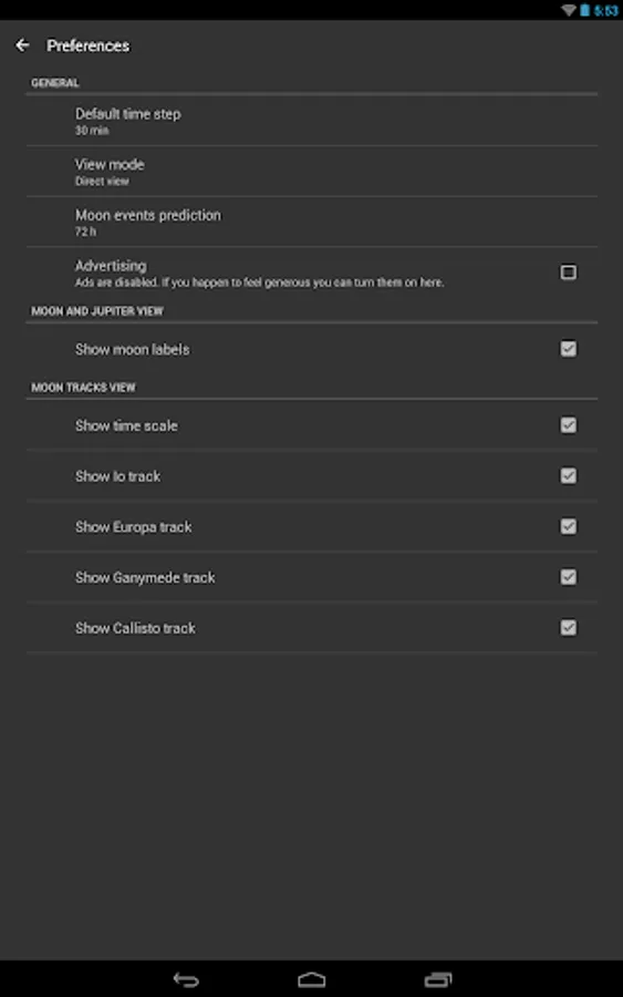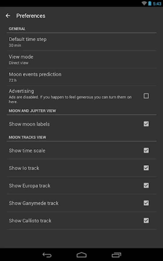 Moons of Jupiter is an android app designed to predict positions of Galilean Jupiter's moons: Io, Europa, Ganymede and Callisto. This application allows to: