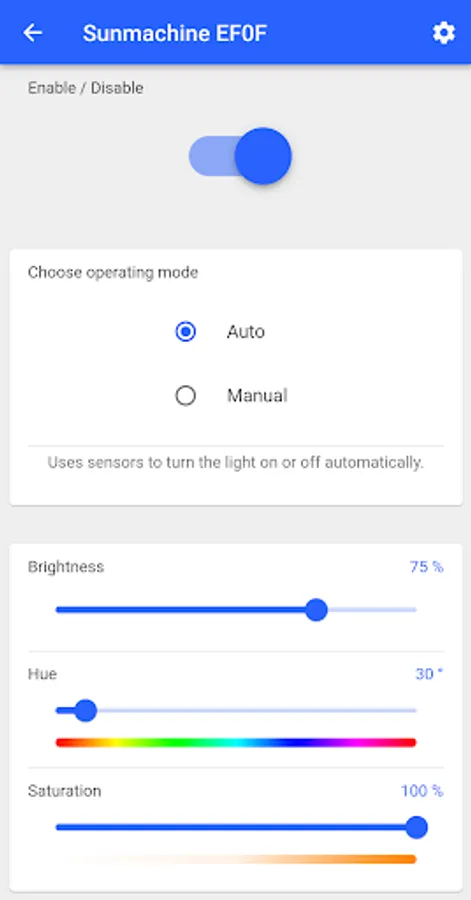 - In auto mode, it uses motion and light sensors to turn the light on or off automatically.