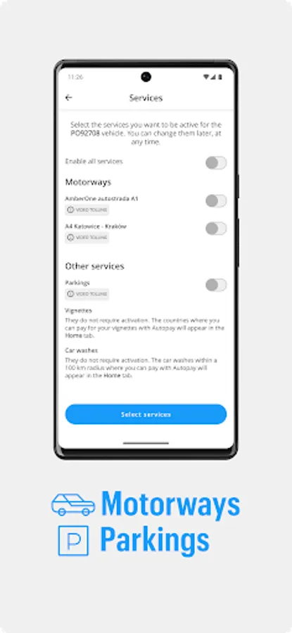 With Autopay, you can also pay automatically for washing and parking your car. The service is available at our partner facilities - the full list can be found at: https://autopay.pl/pomoc/dodatkowe-uslugi.