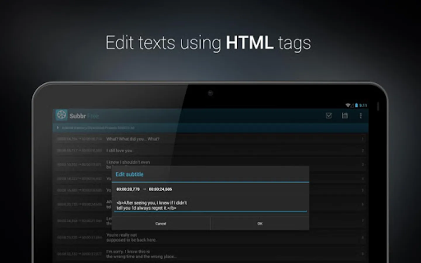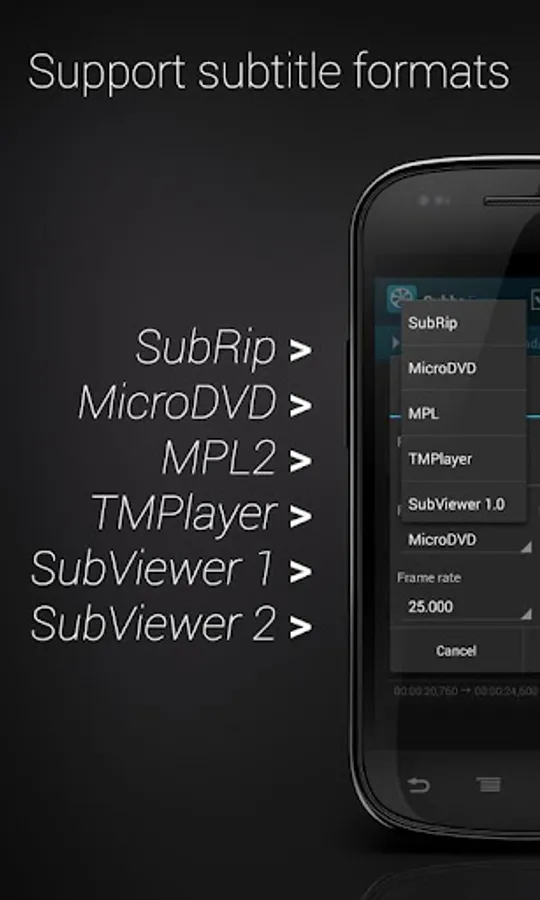 • Reading & writing following subtitle formats: TMPlayer, MPL, MicroDVD, SubRip (SRT), SubViewer 1.0, SubViewer 2.0