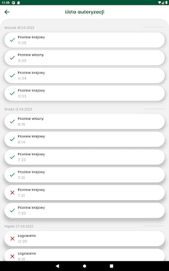 - displaying details of each authorized operation (e.g. transaction amount, transfer recipient details),