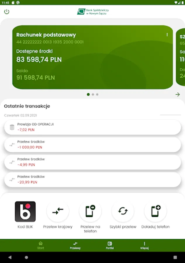 BS Nowy Sącz mobileNet is an application for BS clients in Nowy Sącz, enabling safe and convenient execution of transactions, authorization of operations performed in the electronic banking service, as well as allowing to view the history of operations, information about products, blockades, balances and details of operations.