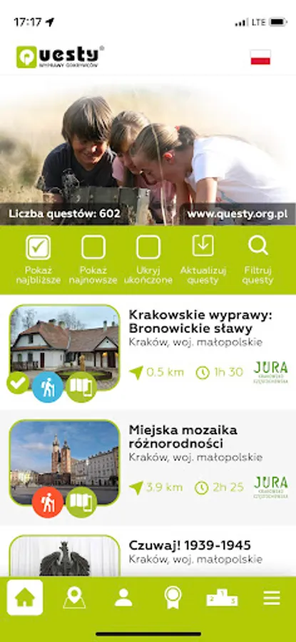 - all available quests (about 700 routes) from www.Questy.org.pl in mobile and paper versions (pdf),
