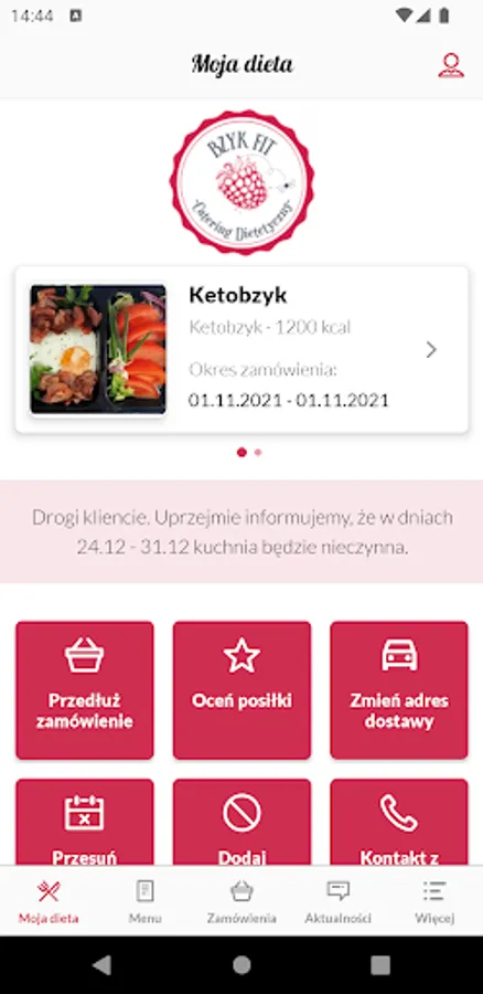 The Bzyk Fit application is intended for the client in dietary catering and serves
