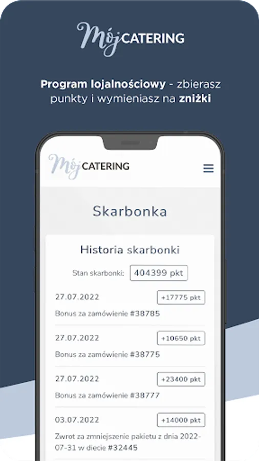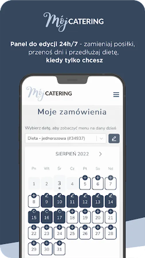 We are very pleased that it is the MojeCatering box diet that will be your daily diet. To fully enjoy our services, install the My Diet Catering application. Thanks to it, you will be able to freely manage your order 24/7 and use the best diet on the market!