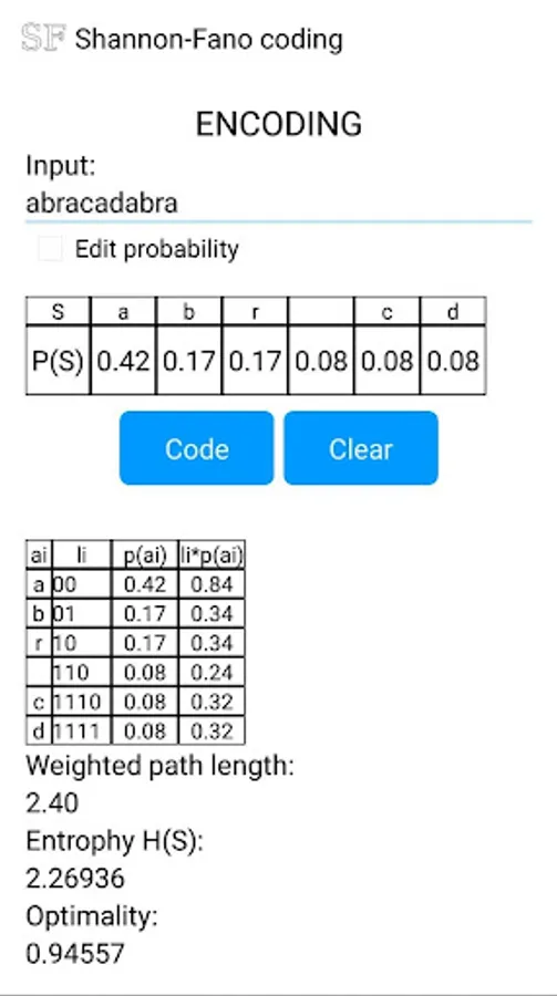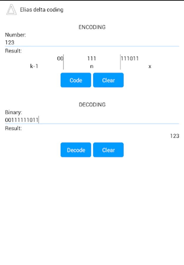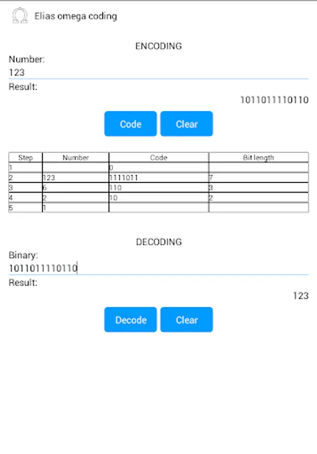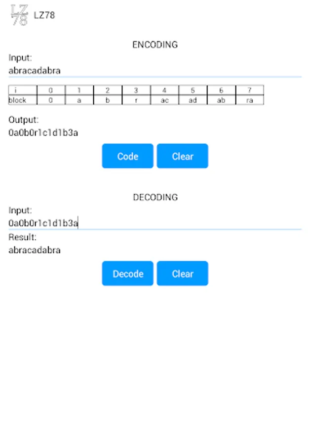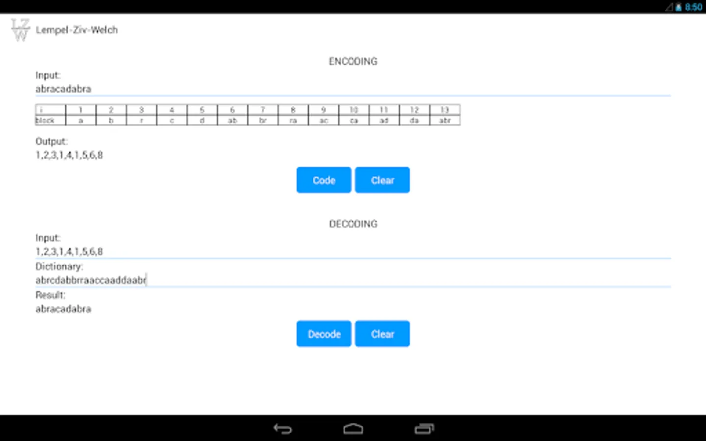Easy Coding is simple App which let's You code, decode and check Your coding result in variety of algorithms like Elias Gamma, Elias Delta, Elias Omega, Huffman's Algorithm, Shannon's Coding, Shannon Fano Algorithm, LZ78, LZW. Easy Coding helps you learn how to convert numbers to and from a decimal system to a binary, octal, hexadecimal or system with a different basis up to 32.