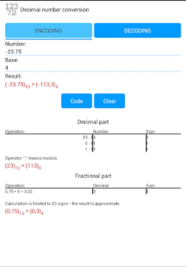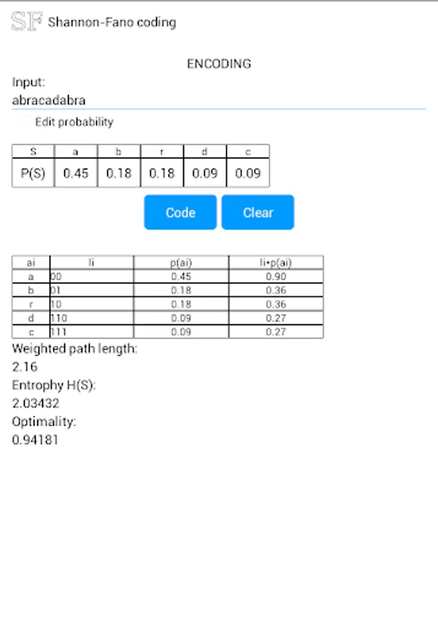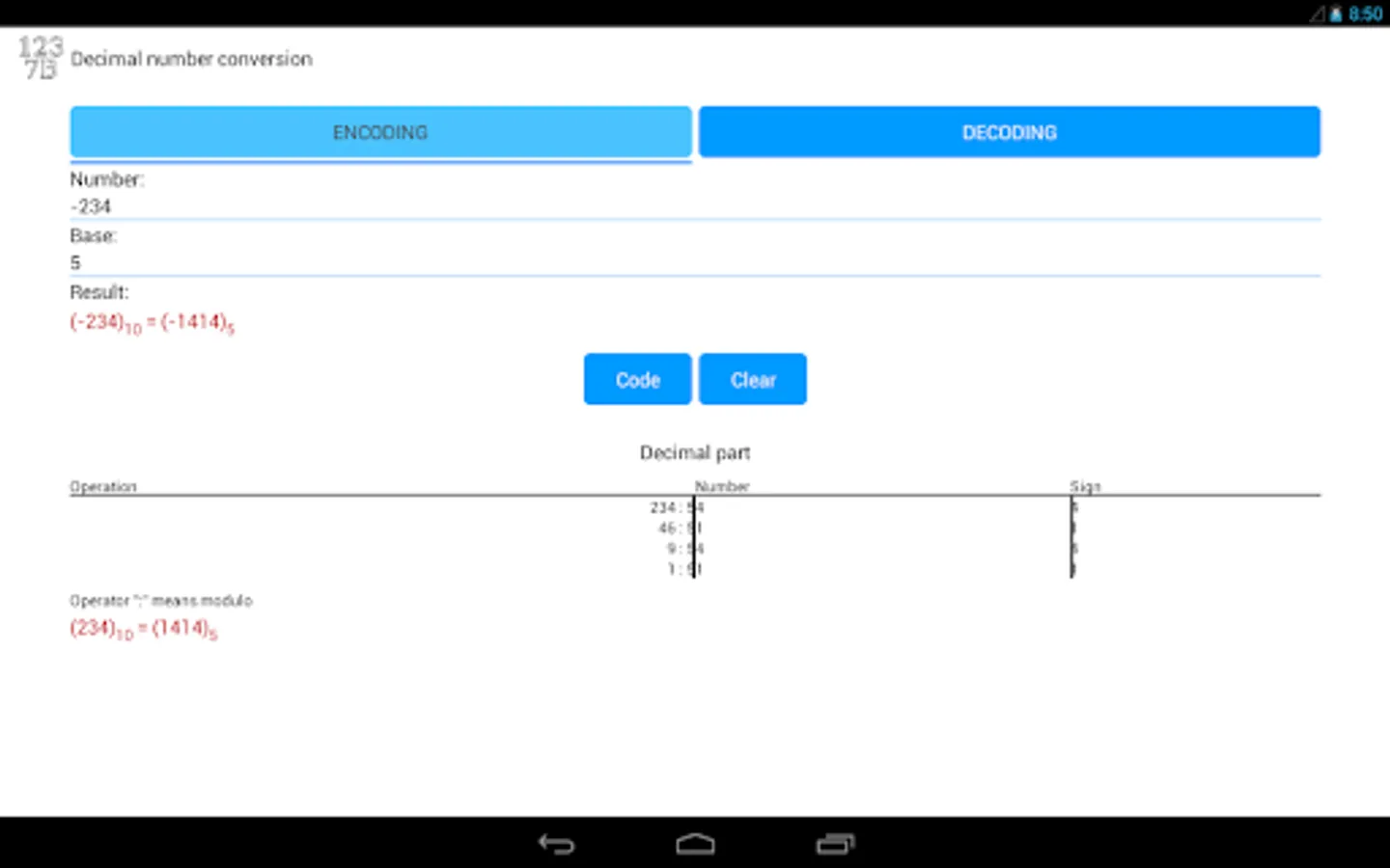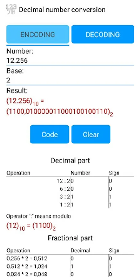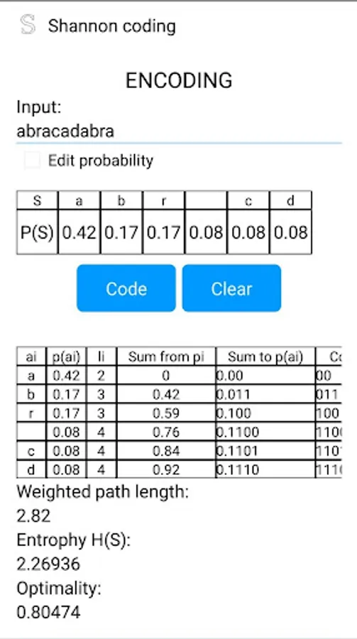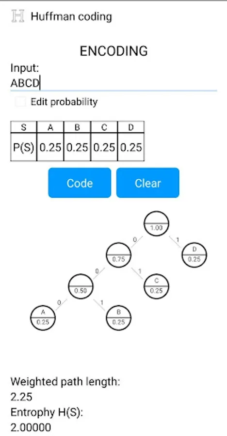 Easy Coding is simple App which let's You code, decode and check Your coding result in variety of algorithms like Elias Gamma, Elias Delta, Elias Omega, Huffman's Algorithm, Shannon's Coding, Shannon Fano Algorithm, LZ78, LZW. Easy Coding helps you learn how to convert numbers to and from a decimal system to a binary, octal, hexadecimal or system with a different basis up to 32.