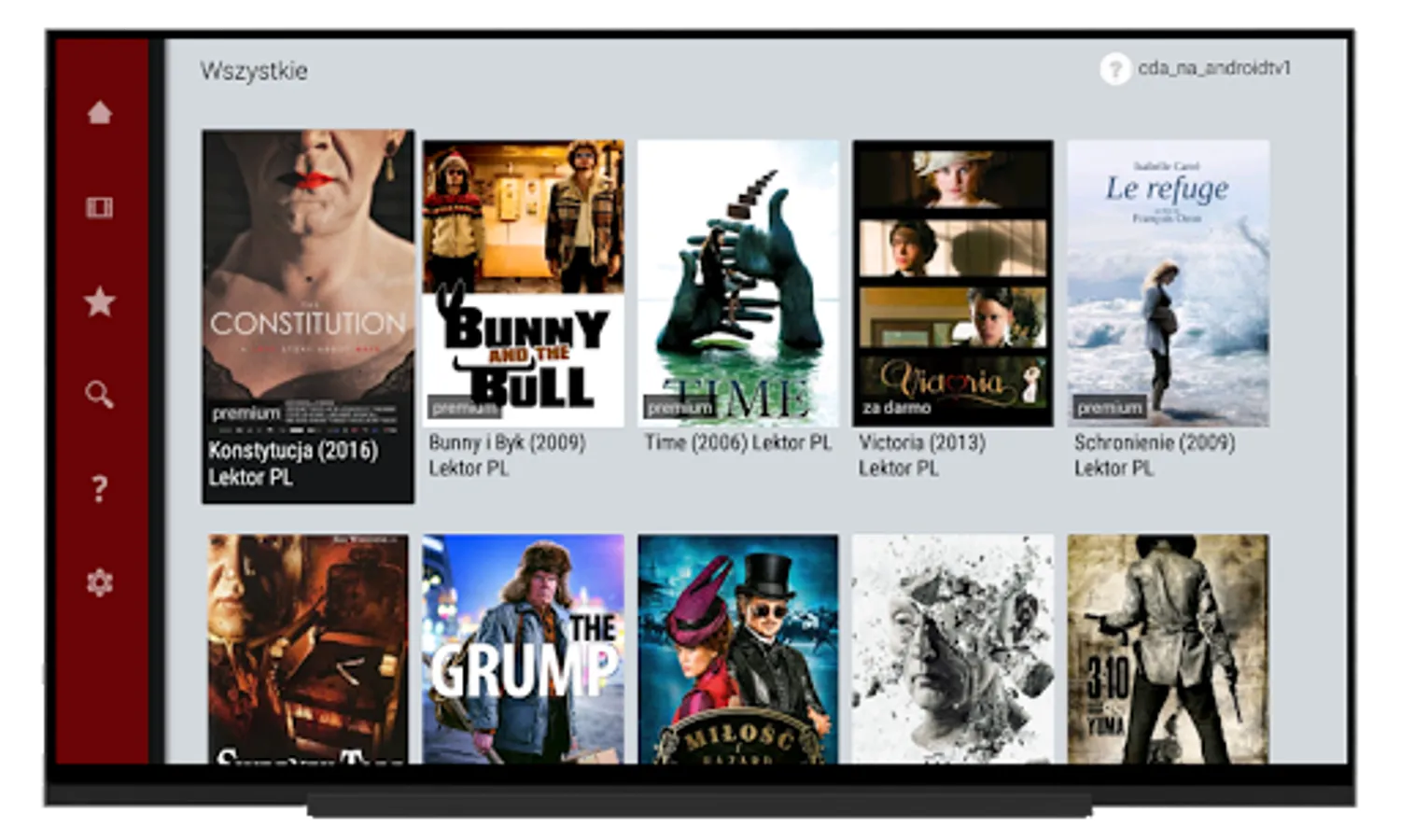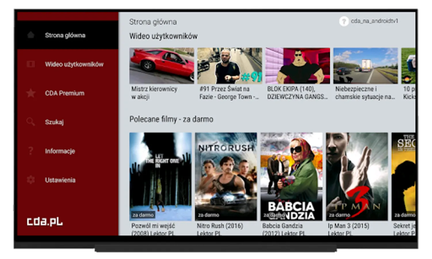 Watch movies from cda.pl directly on your TV. In the app, you can browse the most popular videos added by the community and access premium movies and series.