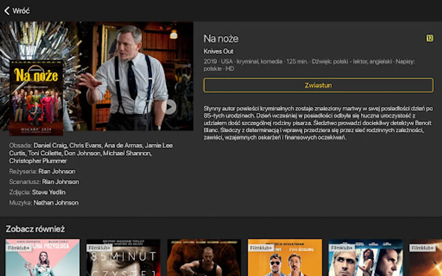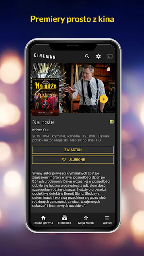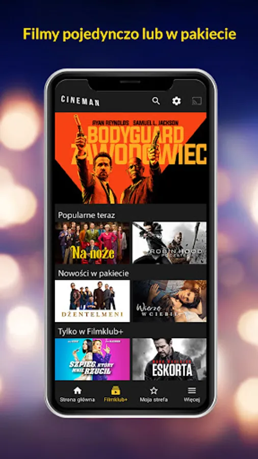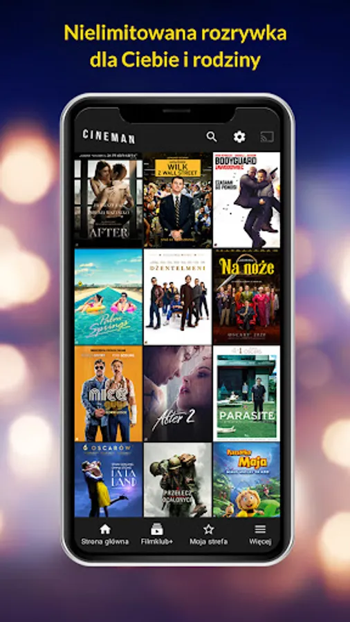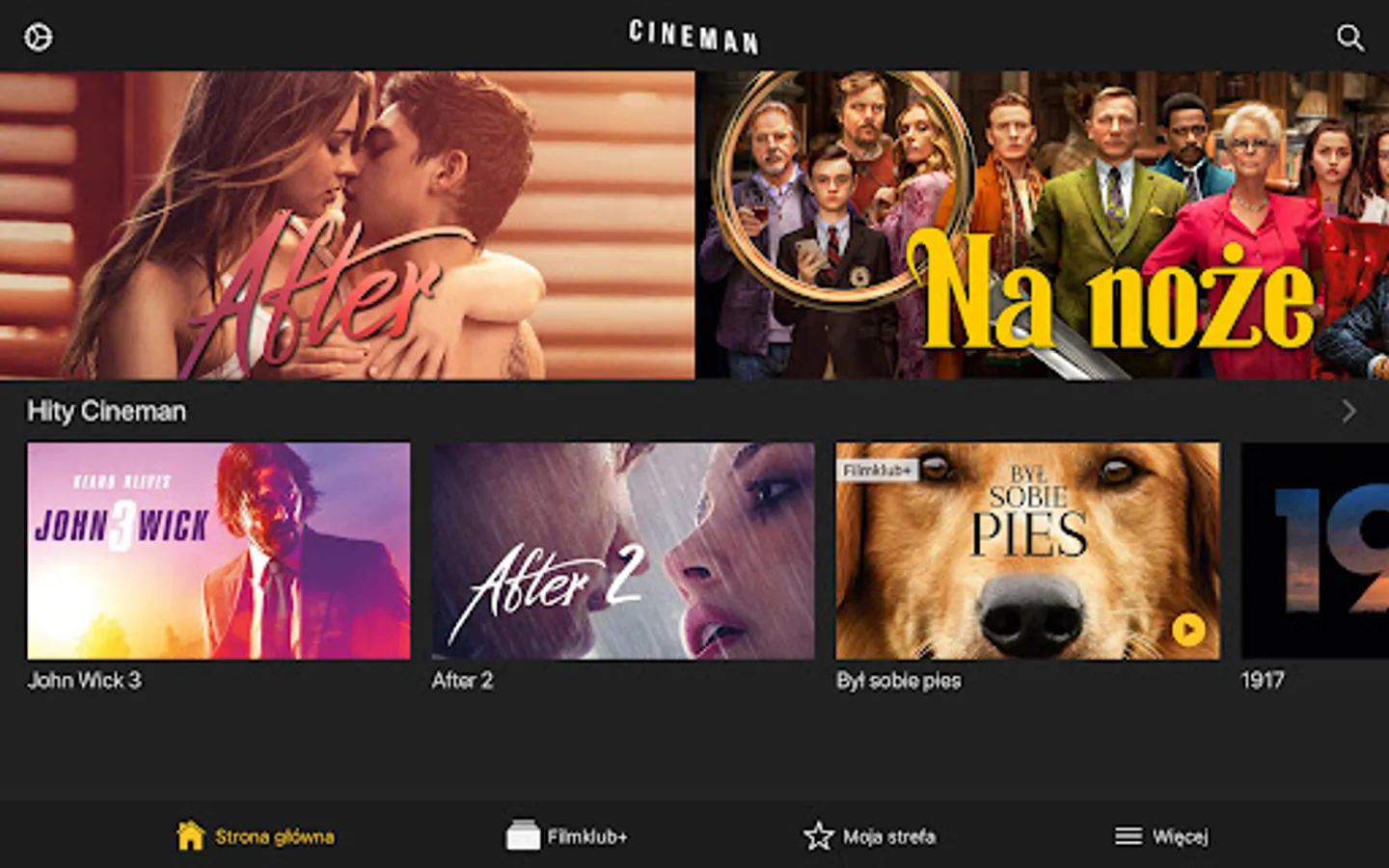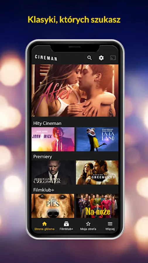 In the Cineman application for Android you can watch both the latest premieres and movies in the Filmklub + package.