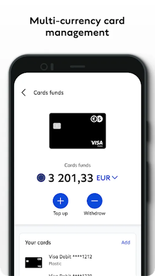 Order a card for payments in 160 currencies and easily manage it in the app. Stay in control of your spending, set limits, link it to Google Pay and withdraw money from ATMs around the world.