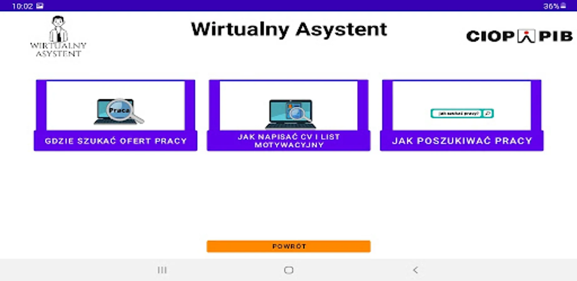 In the Virtual Assistant application, you can also find additional information on how to write a CV or cover letter, and where to look for a job.