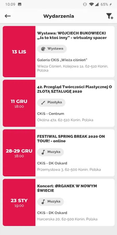 The Epicentrum Kultury application is a window on art and doors that will allow you to enter places where it happens. Knowledge about concerts, cinema, events, performances, exhibitions is at your fingertips. Join us! This is where cultural life goes on. The Epicenter of Culture app will tell you what, where, when in the Konin region and Konin itself. Where do they play a great show? What films push viewers into cinema seats? Who gives an excellent concert? The Epicenter of Culture will answer these questions and help you create your own cultural calendar. Hit us in the city, town, region! Today: - explore Konin and the subregion. Find places related to culture. 50 seats await you: cinemas, theaters, museums, centers and cultural centers. Do you want to leave today, this week, this month? Find out when events that you can't miss start. Read about the details of the events you are interested in. - Set off on a tour with us - plan the day around the Pyzderska Forest and the surrounding area, in the footsteps of iron houses, windmills, and mansions. Stand on the border of partitions and listen to ... a folk singer! - receive notifications about new events, concerts, exhibitions. - Click on the heart and add the event to your list of favorites so you don't forget about anything. - read about us! The Culture and Art Center in Konin is a unique place - and most importantly - download a portion of constantly updated information about the cultural life of Konin and the region!