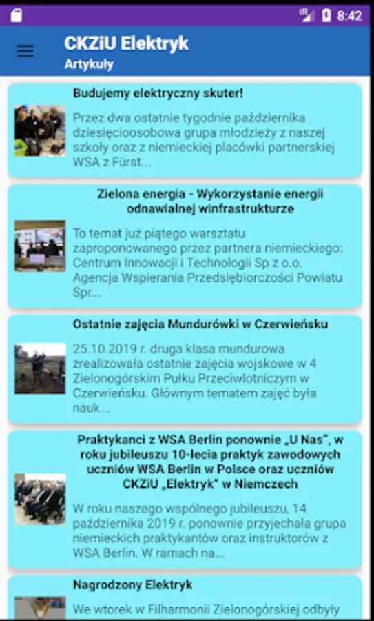 An application to view the lesson plan and newly added articles by the Electrician school in Nowa Sól