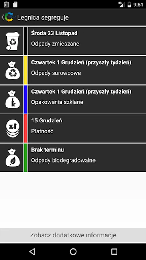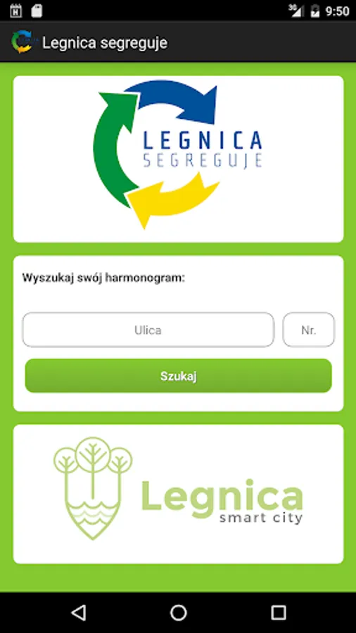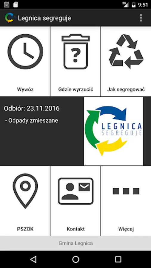 The application provides schedules for municipal waste collection for the city of Legnica.