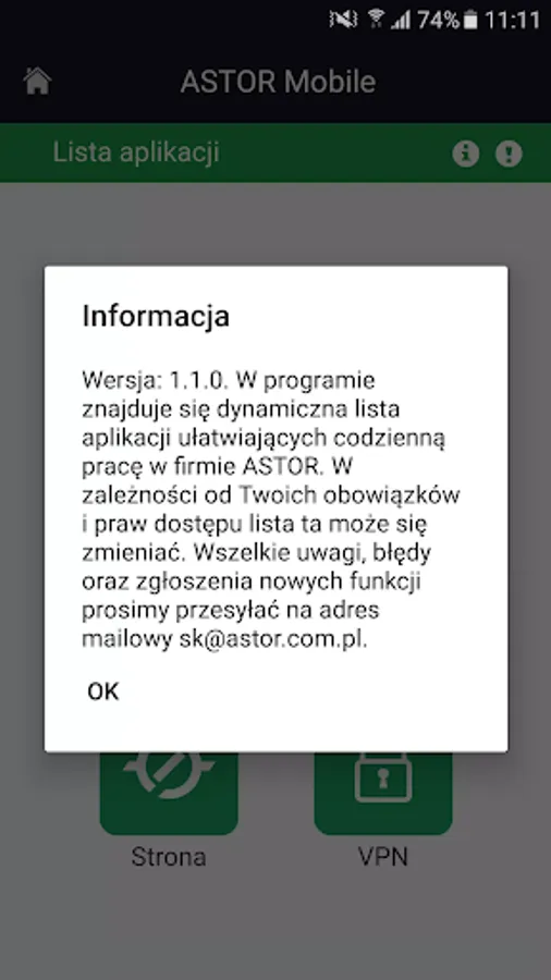 The application connects to the authorization server recognizing users in the domain and on this basis grants employees access to ASTOR's internal tools.