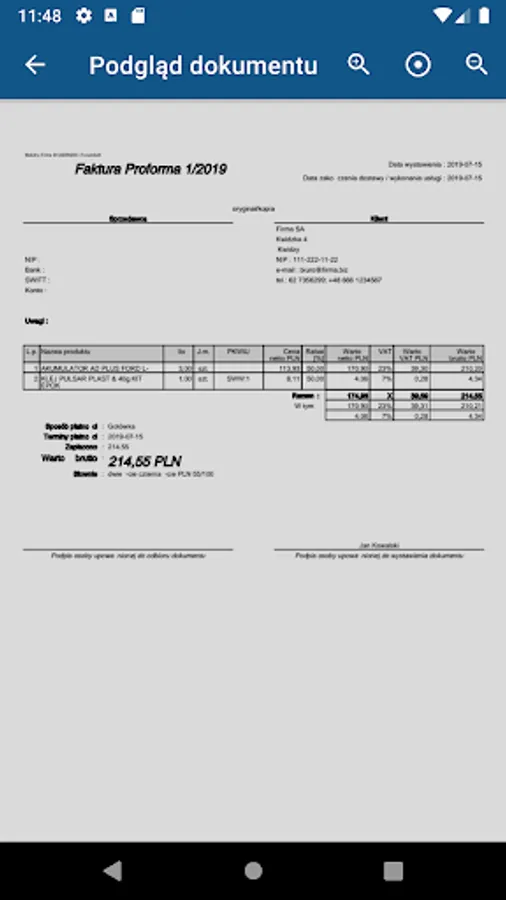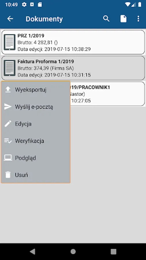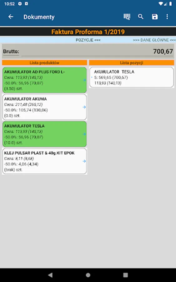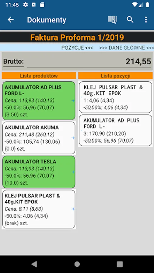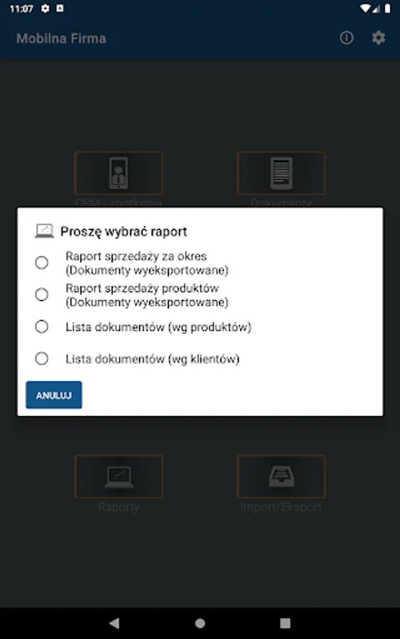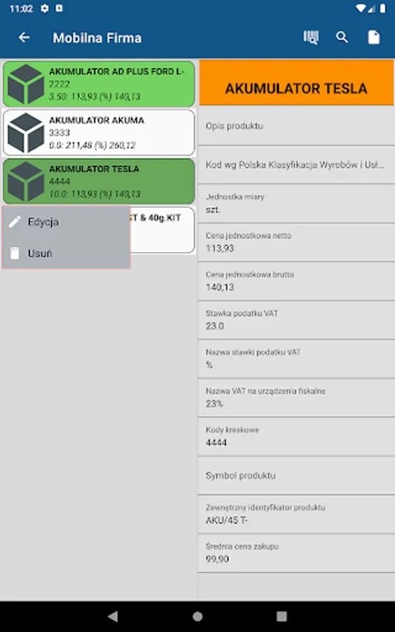 Mobilna Firma is 100% compatible with the Mobilny Handlowiec program. Data from the Mobilny Handlowiec application (from version 5.77 onwards) can be imported into the Mobilna Firma program.
