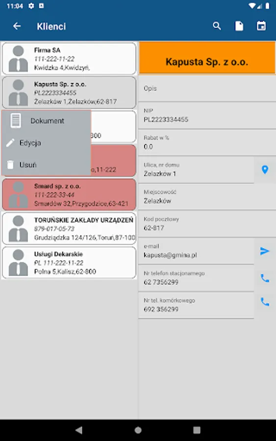 The Mobile Company application can be used both as a stand-alone application and as a supplement to DGCS System Magazyn and CRM modules. It allows you to support many warehouse and sales operations using a smartphone or tablet.
