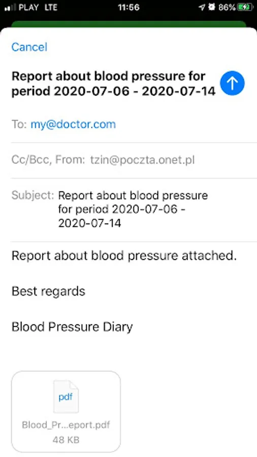 Application generates clean and tidy pdf report. This report can be shared with your doctor.