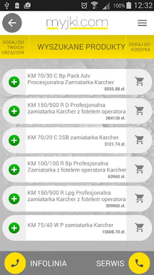 Just enter APP to your device model Kärcher, and the program will search for us all matching its accessories and chemicals found in the store Myjki.com. Ordering again accessories eg. Vacuum bags, we find them in the washer GO tab / my shopping / and clicking on the basket, we can make a quick purchase.