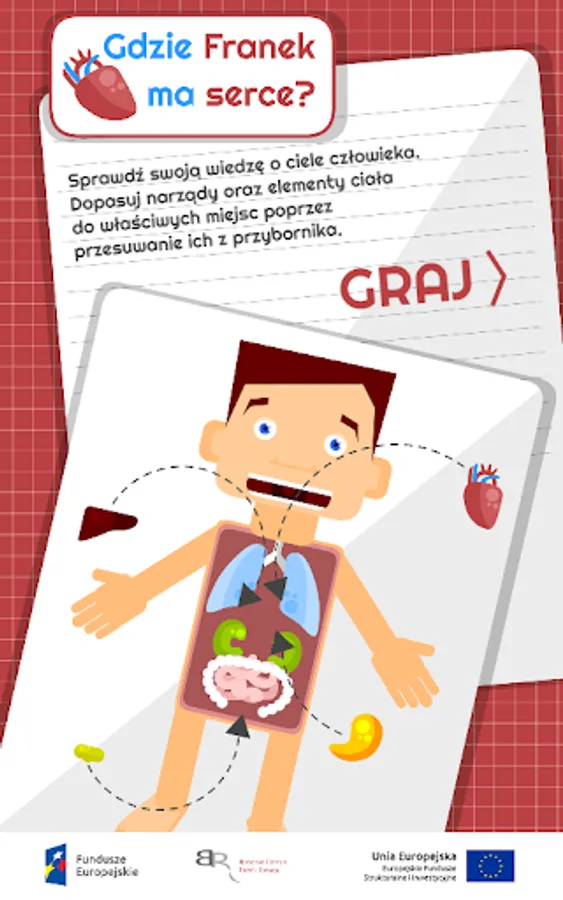 Educational game in which a player's task is to put into place the appropriate parts of the body such as the heart, bones or lungs.