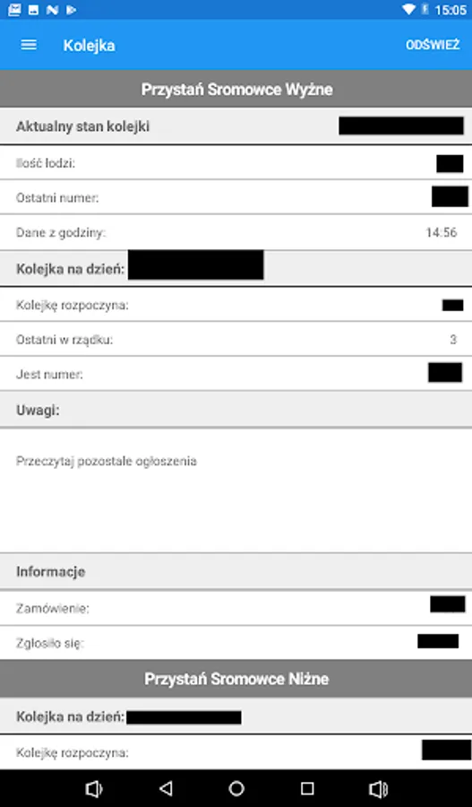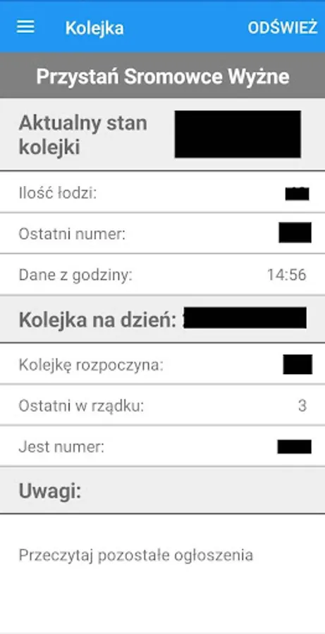 The application allows you to track the current state of the queue and make entries for rafting on a given day.