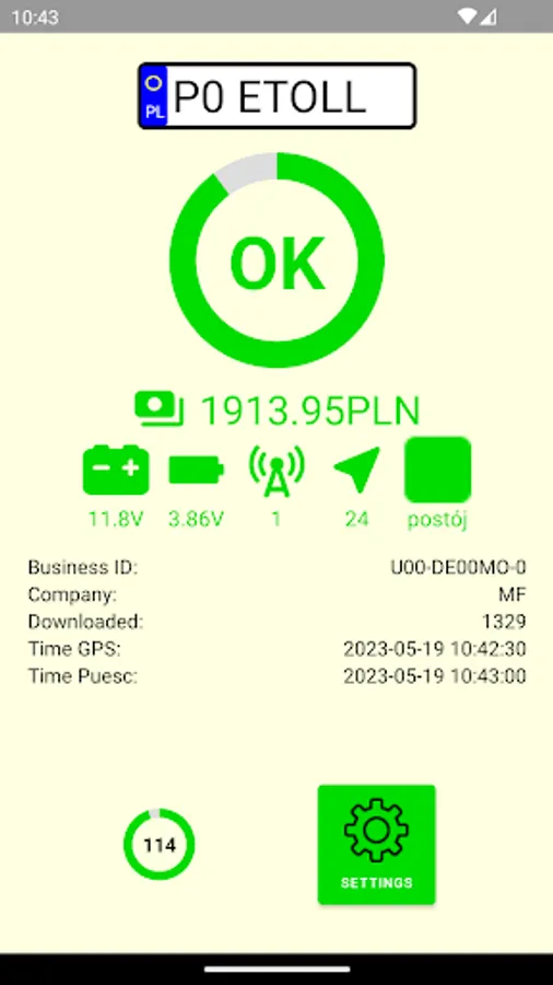 The application contains real-time data about the device itself and information about the data transferred to the systems of the Ministry of Finance regarding the fees charged and vehicle geolocation.