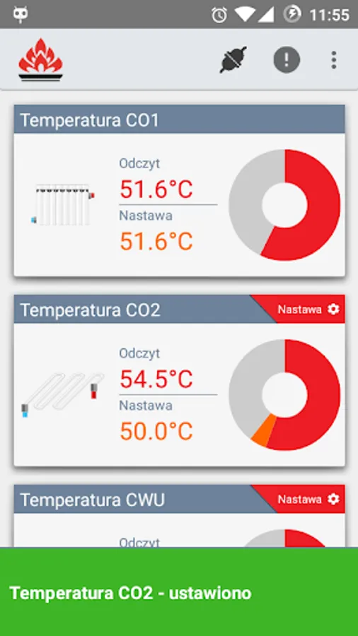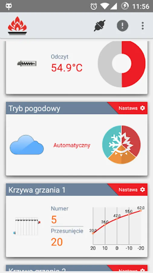 The application allows you to control the settings of selected boilers companies Klimosz. Control your boiler using a smartphone from anywhere.