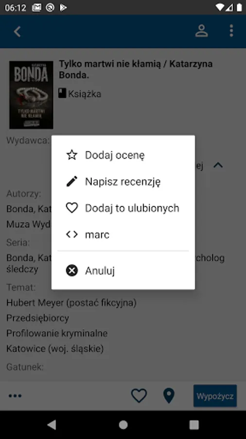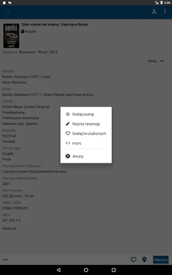 A logged-in reader can verify the status of his library account, add reviews or ratings.