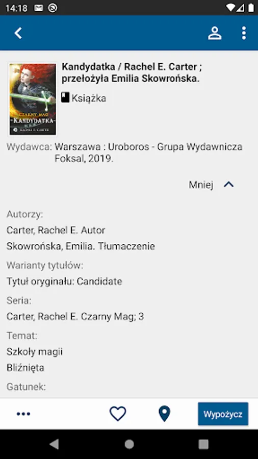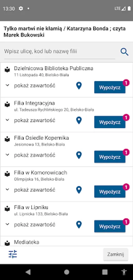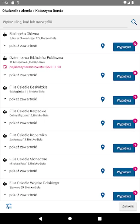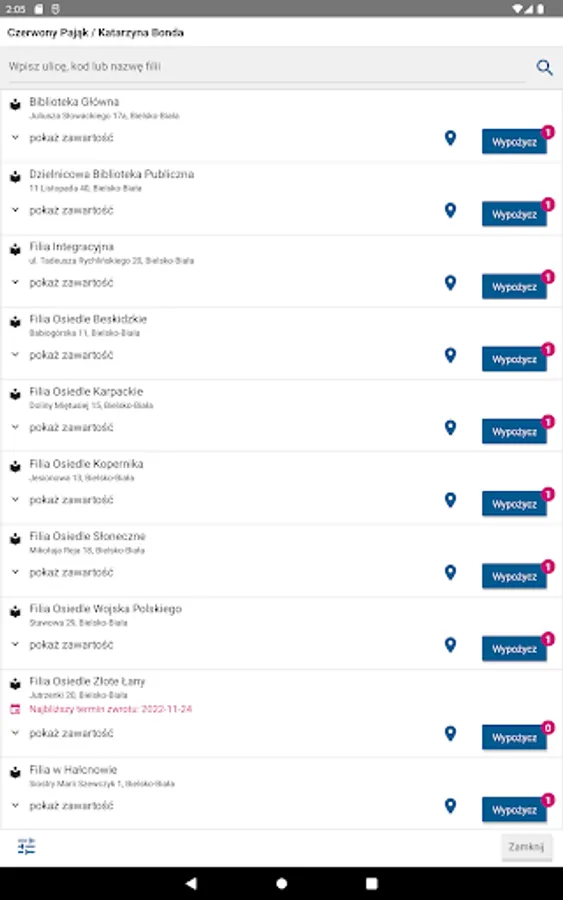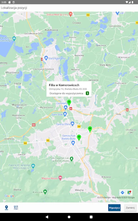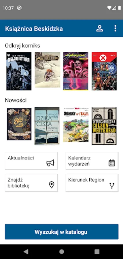 The application allows readers to use the catalog of the Beskid Library in Bielsko Biała.