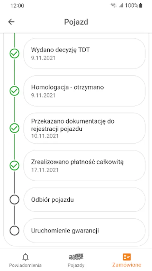 When you buy a new vehicle, you get an insight into the entire purchase process - full information from each stage along with the deadlines.