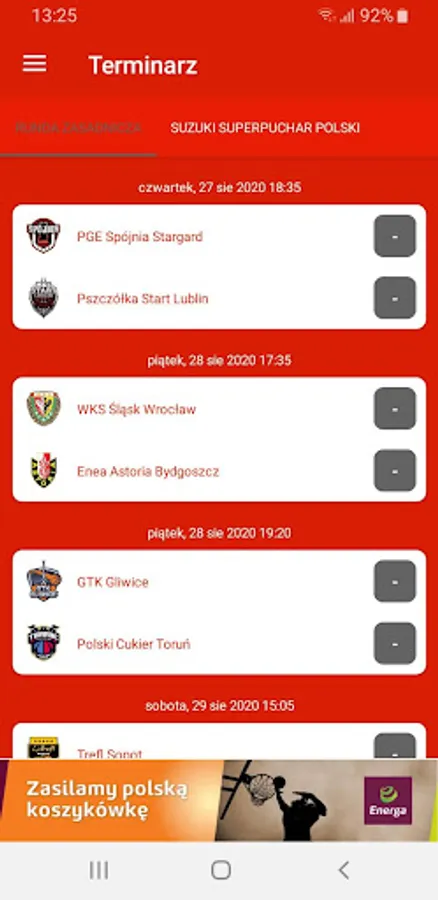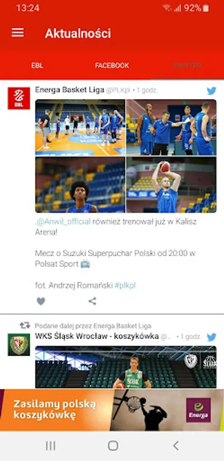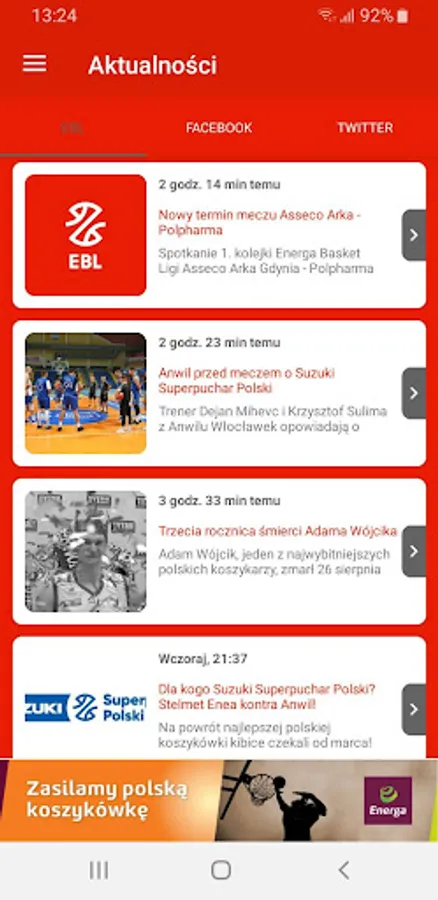 The official application of Energa Basket Liga. The application allows access to: