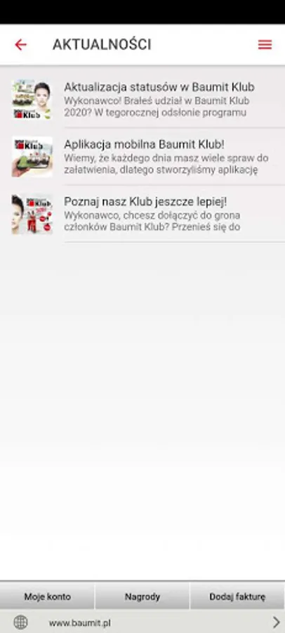 We know that you have a lot of welding to do every day. We respect your time and we want the Baumit Klub membership to be simple and pleasant. To make it even easier to use all the functions of the program, we have launched a mobile application. Thanks to it, not only can you easily register invoices, but you will also find the necessary information about the operation of the Baumit Klub. You will always have an up-to-date news preview, you will be able to control your account, check statuses and score points. You will not miss anything anymore!