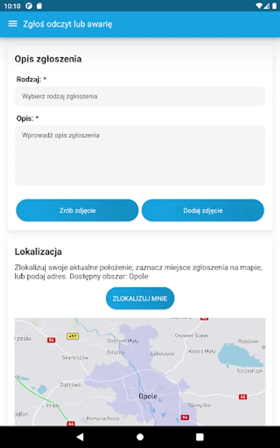 The application in a very simple way allows for reporting to WiK Opole meter reading of water consumption or technical problem.
