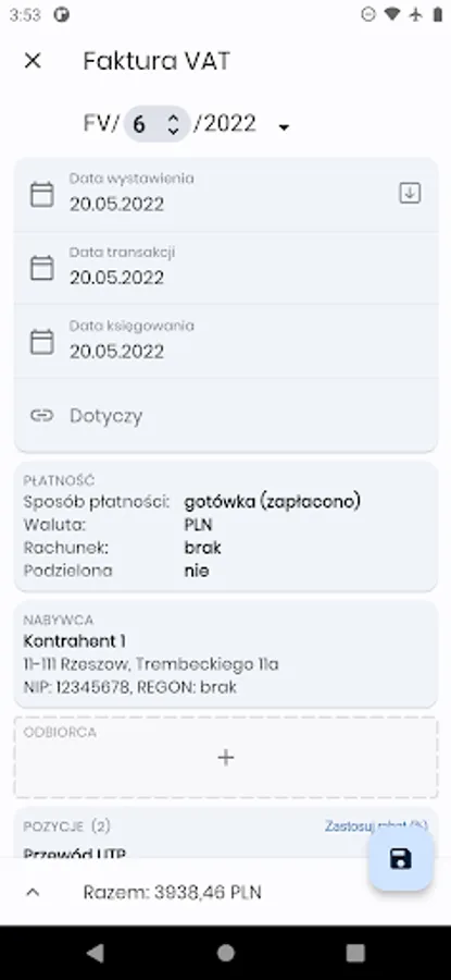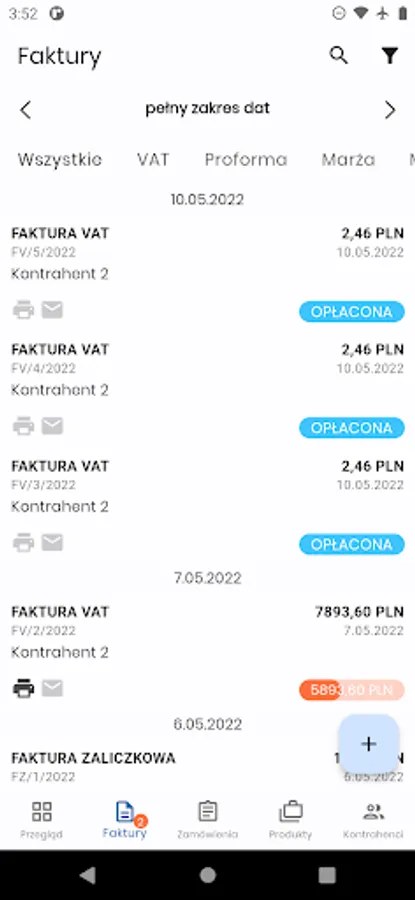 • a file of contractors and the possibility of supplementing the contractor's data from the Central Statistical Office database when issuing invoices