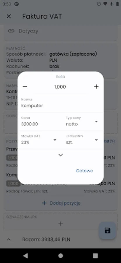 Mobile version of the invoice light application for computers. It can be used as a supplement, but also as the main or the only option - it does not require a desktop version, but only access to the network database in the Complay service (paid service).