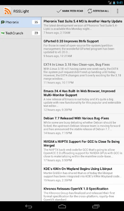 RSSLight is an efficient and easy-to-use RSS client. With this app you can keep track of your favourite sites in one place.