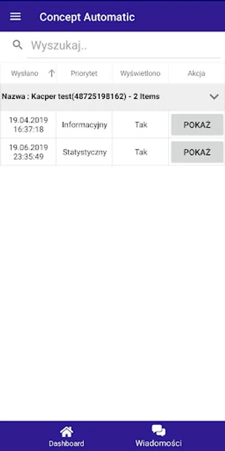 The application allows you to log in to the Concept Automatic vending system. After connecting the machines to the system, it is possible to receive notifications about new messages and to read them directly in the application.