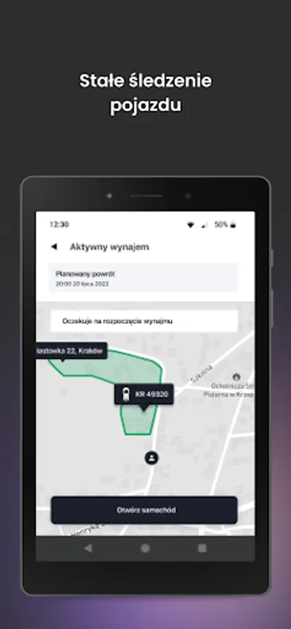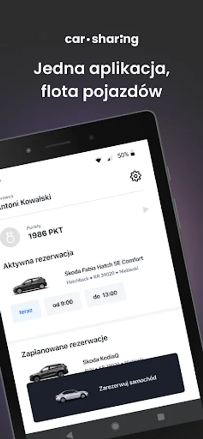 The application aims to optimize the use of the fleet by sharing it among many employees at the same time. Using the mobile application, users can reserve vehicles and then remotely open and close them. Car keys should always be in the glove compartment.