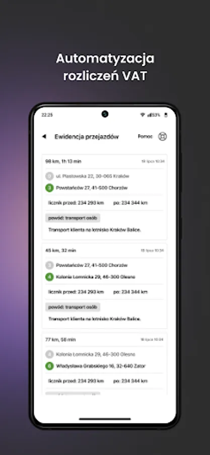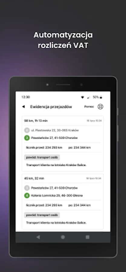 Automation of VAT settlements. Thanks to the automatic record of journeys, the manual work related to completing declarations of journeys for VAT is eliminated.