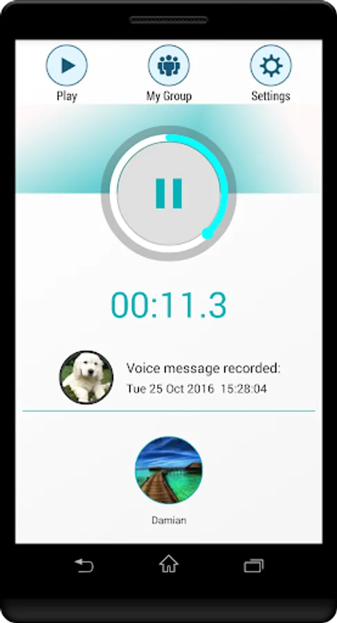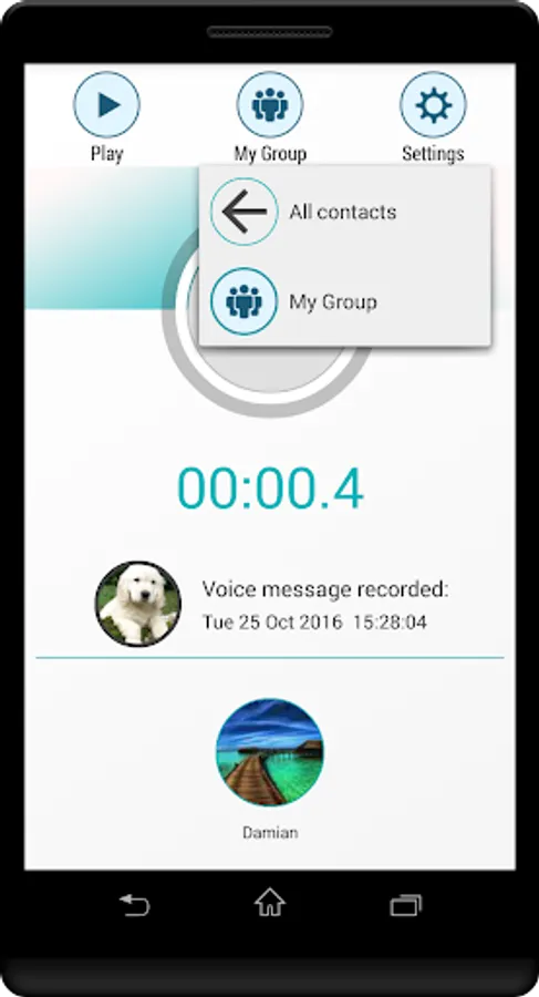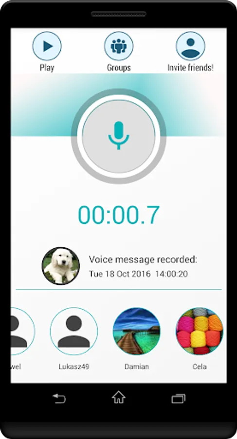 One finger touch - that's all you need to make a voice message record - WhispApp application takes care of the rest by sharing your message to all of your friends from destination group. Groups are managed by you - you can add new ones, edit old ones, do not limit yourself, the possibilities are endless.
