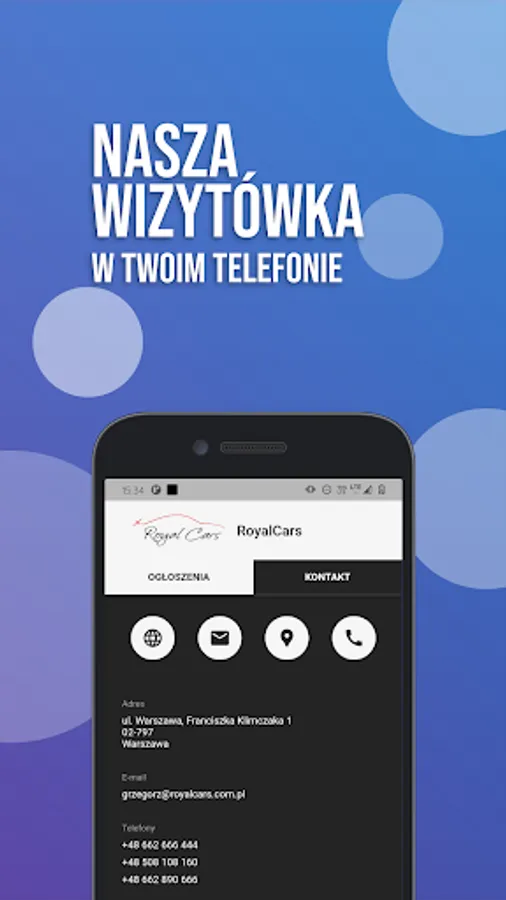 Royal Cars are unique cars for exceptional customers for whom we have created a special, dedicated mobile application. Thanks to it, the customer will always be close to our cars and also: