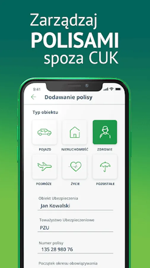 The CUK Ubezpieczenia application is a convenient insurance portfolio where you can store all your policies purchased from any agent.