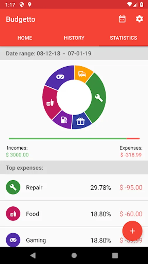 - Pie chart of your expenses