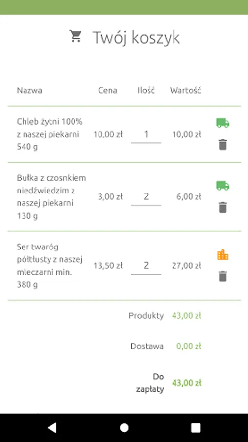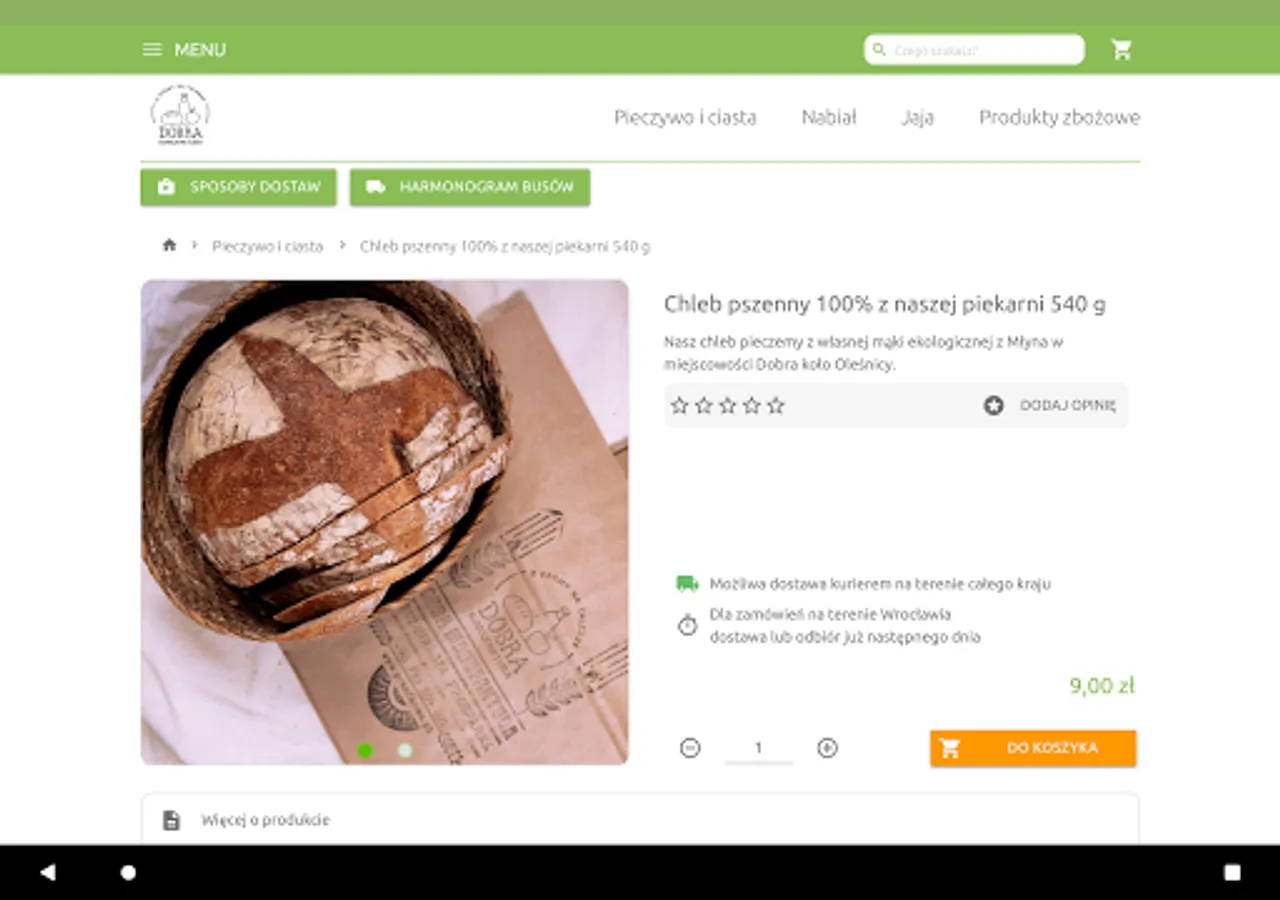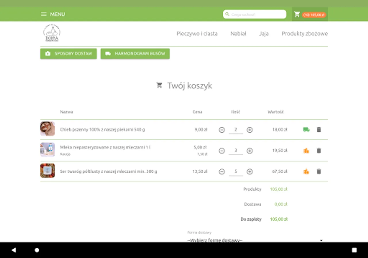 The application also has a schedule for delivering our goods with our own transport in the capital of Lower Silesia - Wrocław.